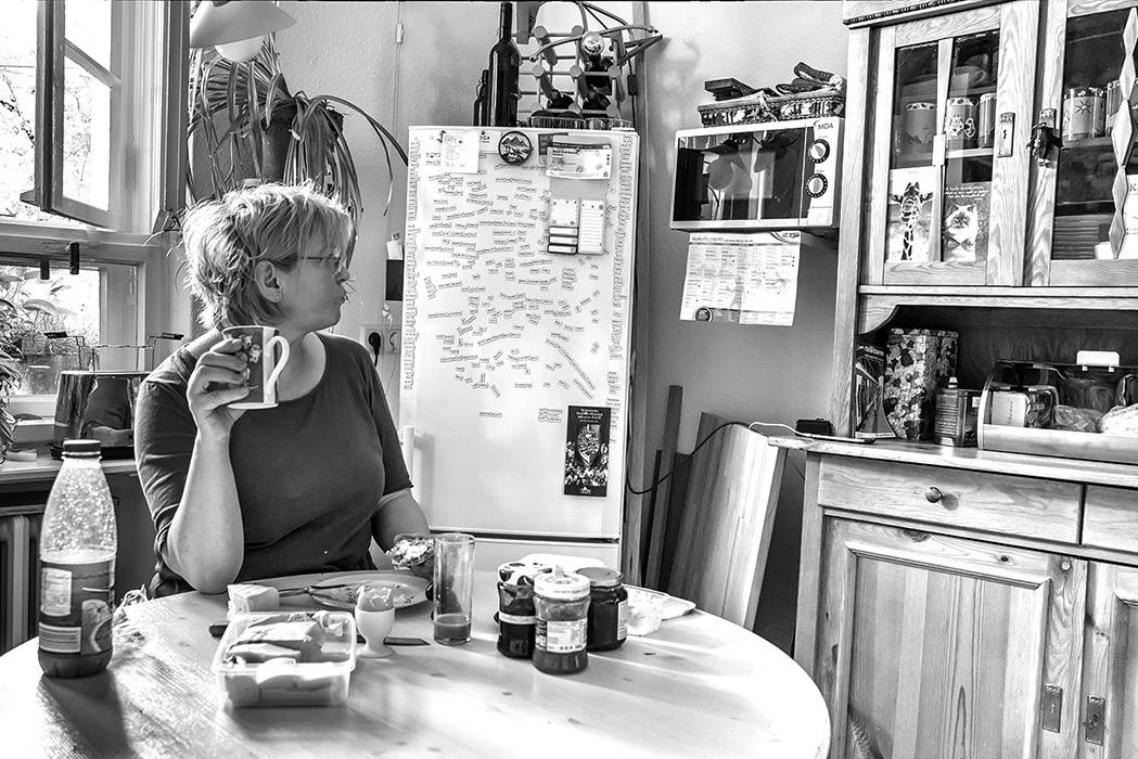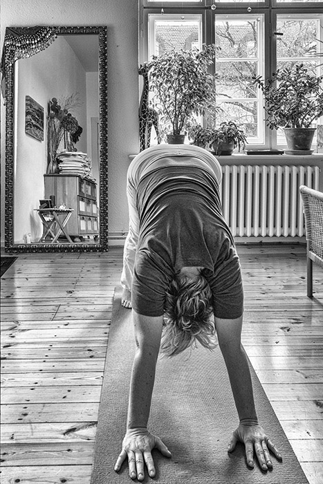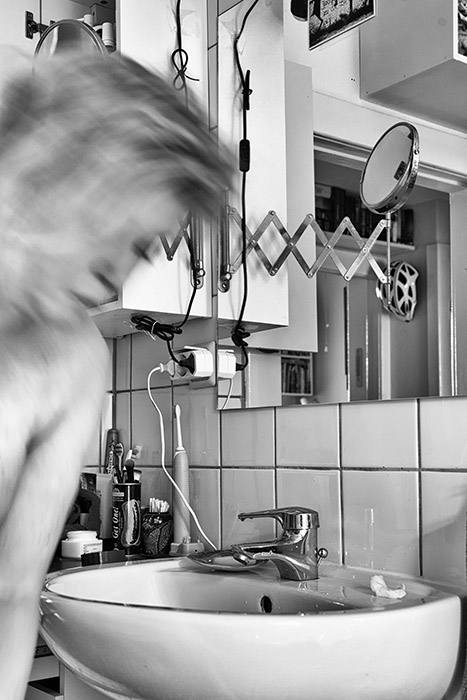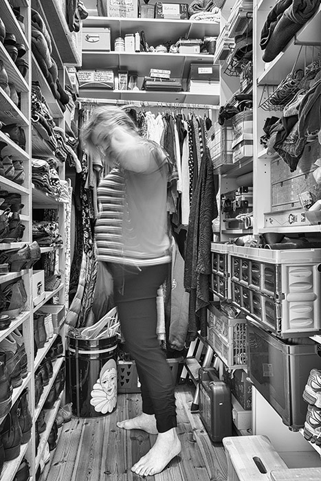 Der Körper. Anfangs unbeobachtet und unzensiert, geradezu nackt. Ganz privat, ganz einfach Ich. Gestützt von vertrauten Räumen und Gegenständen beginnt das Ringen um äußere Form. Der Körper soll öffentlich werden, präsentabel. Rituale helfen. Am Ende ein anderer Körper, ein neuer Mensch. Angezogen – nicht nur – mit Kleidern und Make-up. Auch Ich? (Berlin 2015)